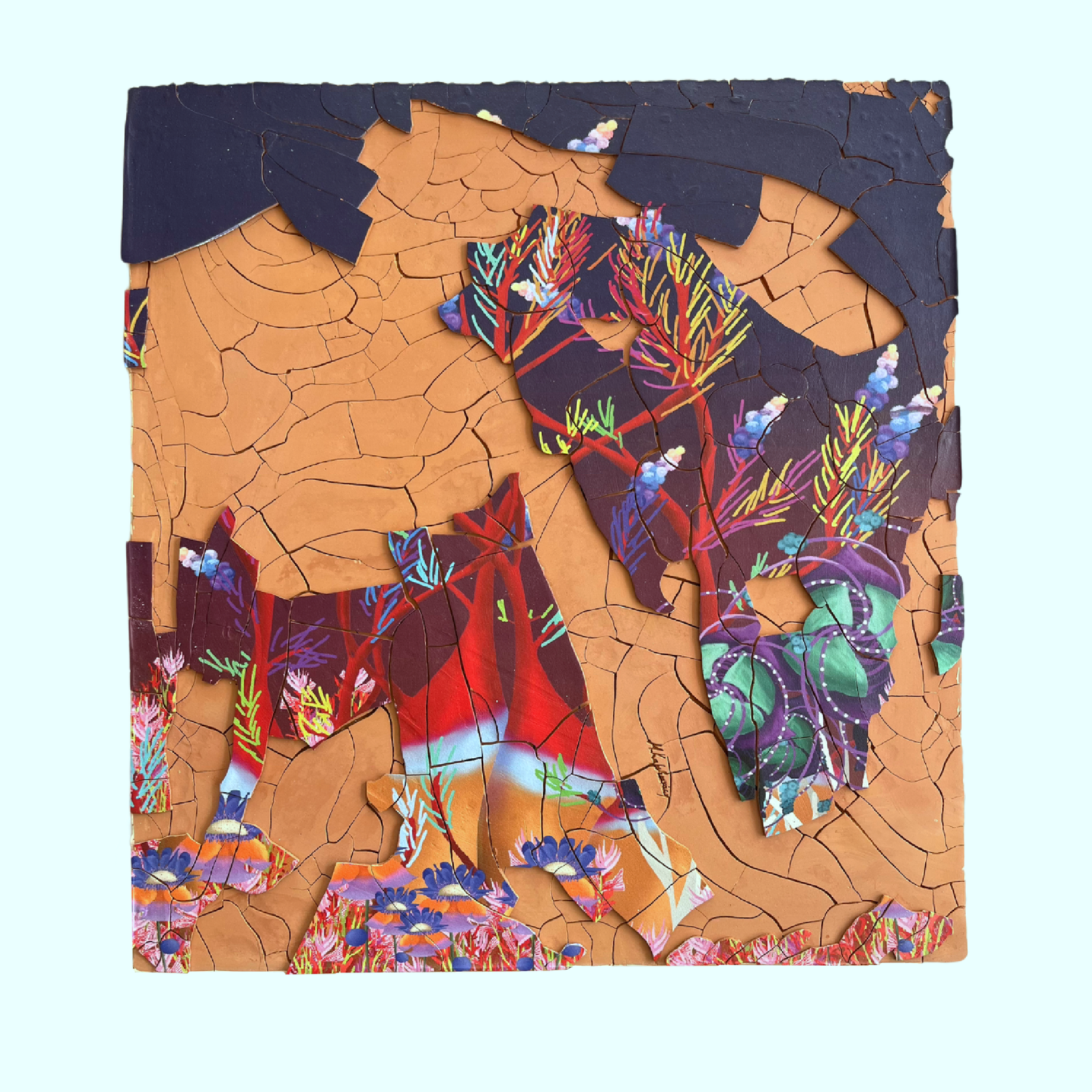 The piece is created using High Tech Print on Ceramic — a fusion of traditional and contemporary media. Ceramic, a material with deep historical and cultural roots, acts as a stable base for high-tech printing. Through this meeting of the old and the new, the artist raises questions about the continuity of the human experience.